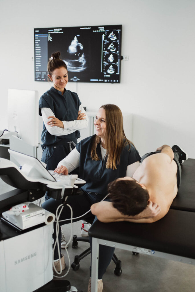 Das Ruhe-EKG ist eine wichtige Ergänzung zum Herzultraschall. Es zeigt die Erregung des Herzens im Erholungszustand, wodurch Anzeichen für Herzerkrankungen aufgedeckt werden.